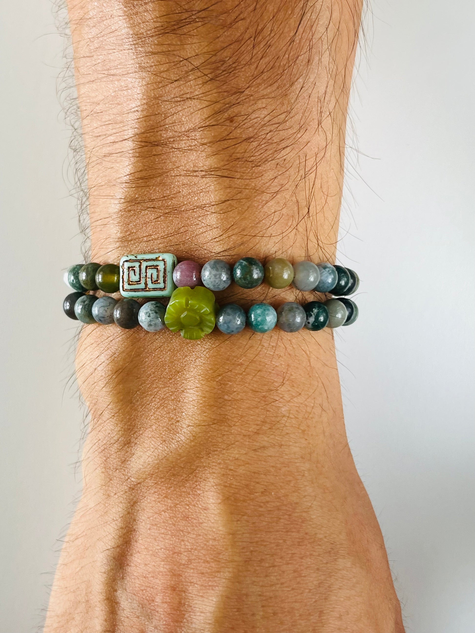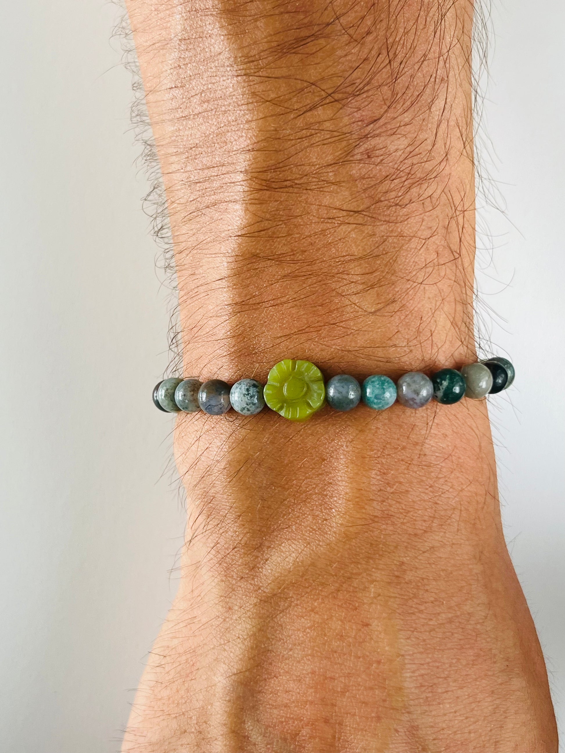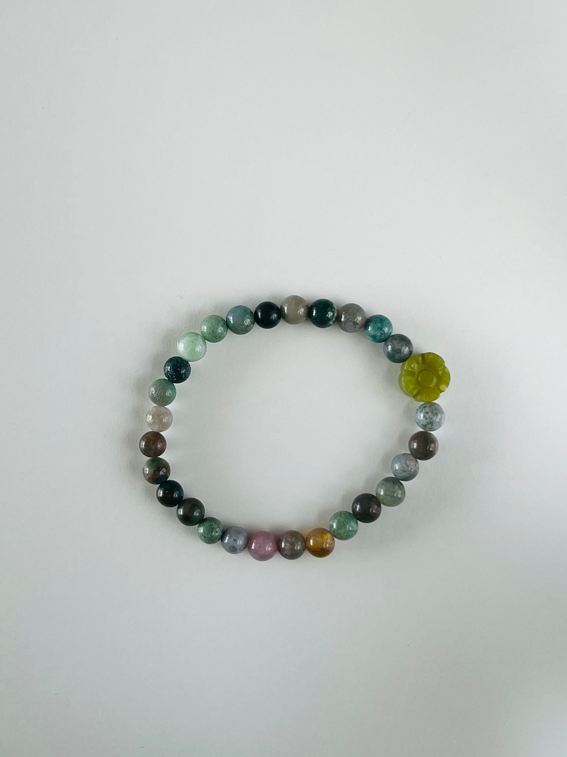 Made of 6mm agate beads and a flower bead.